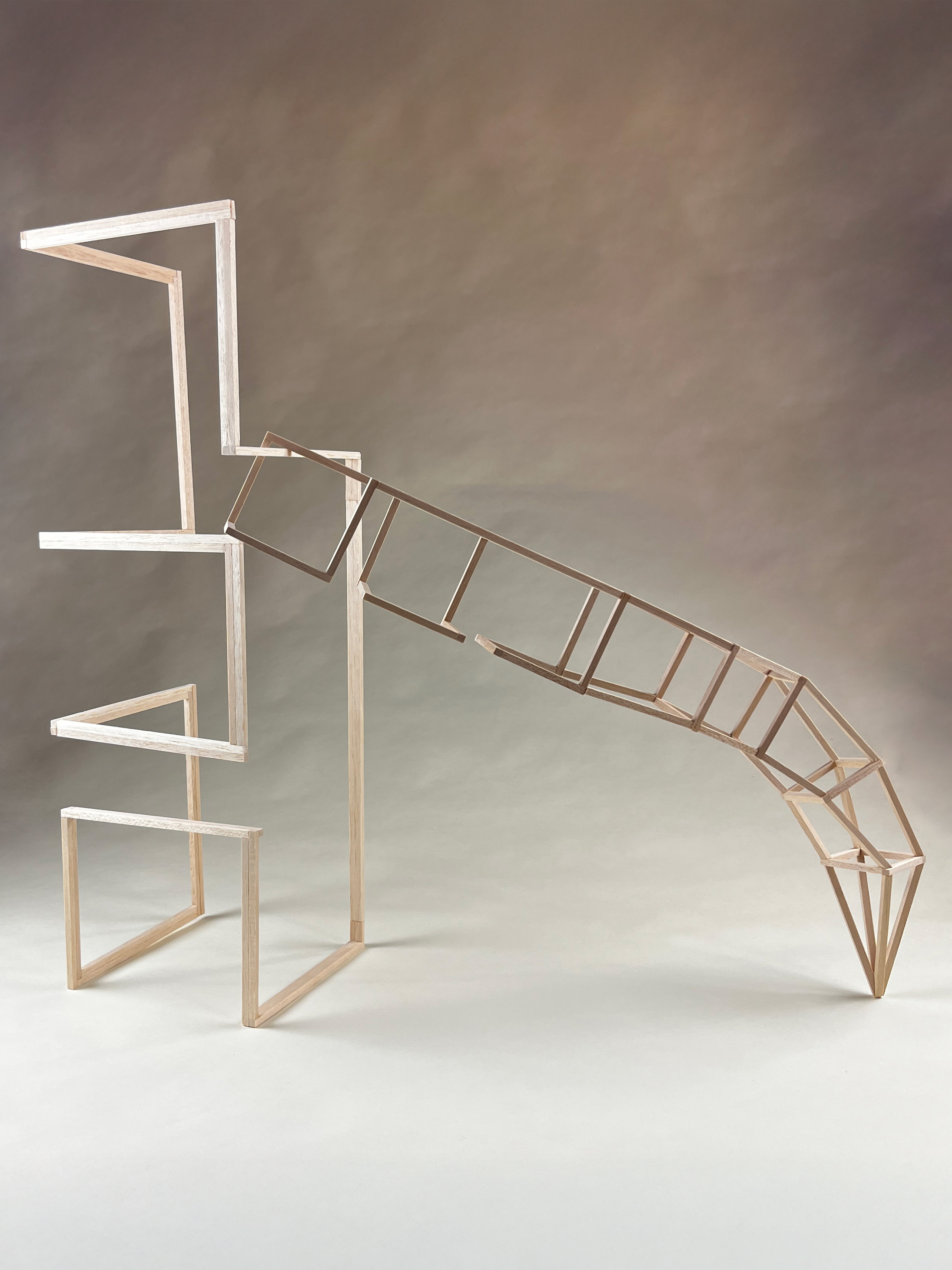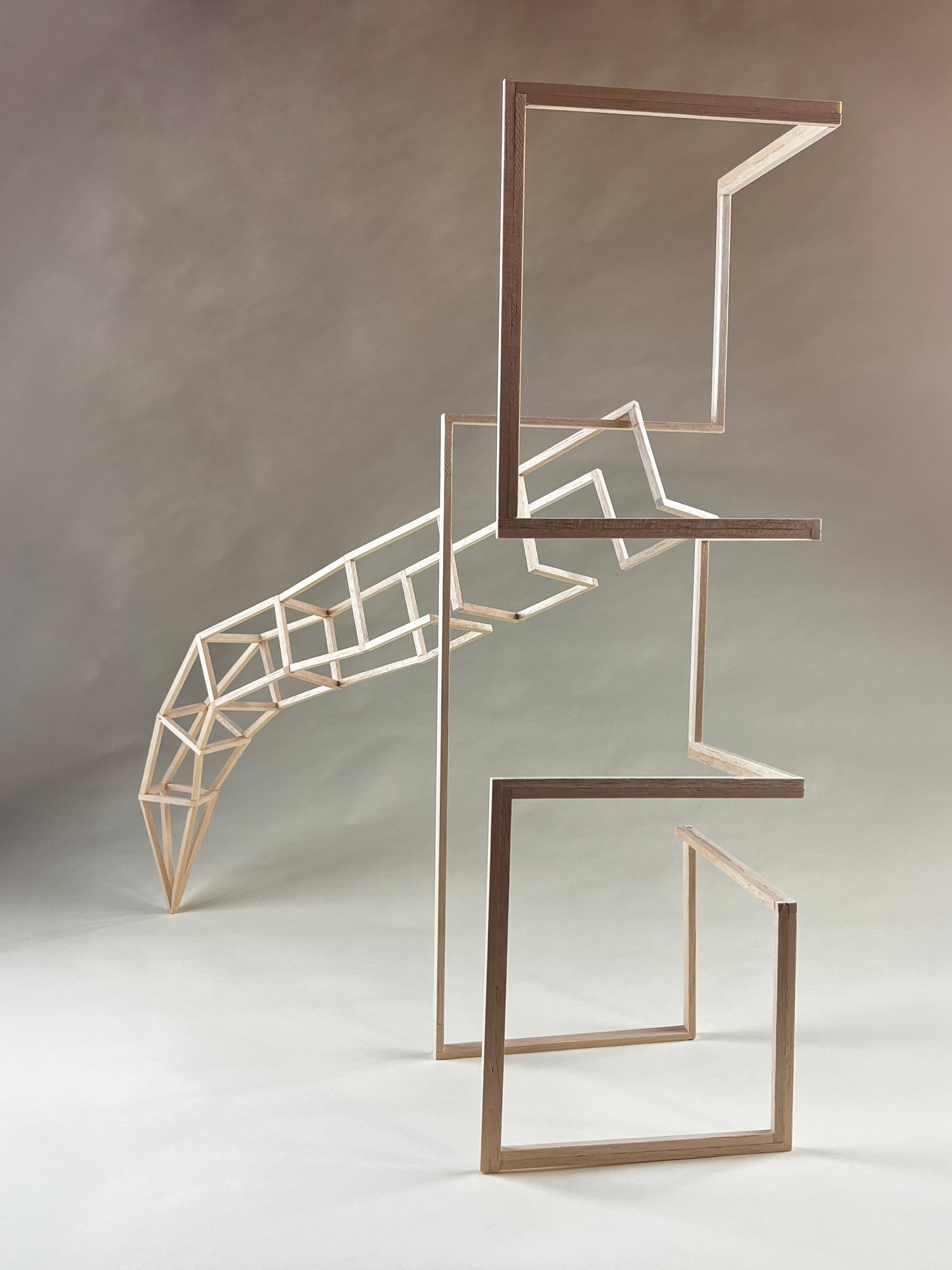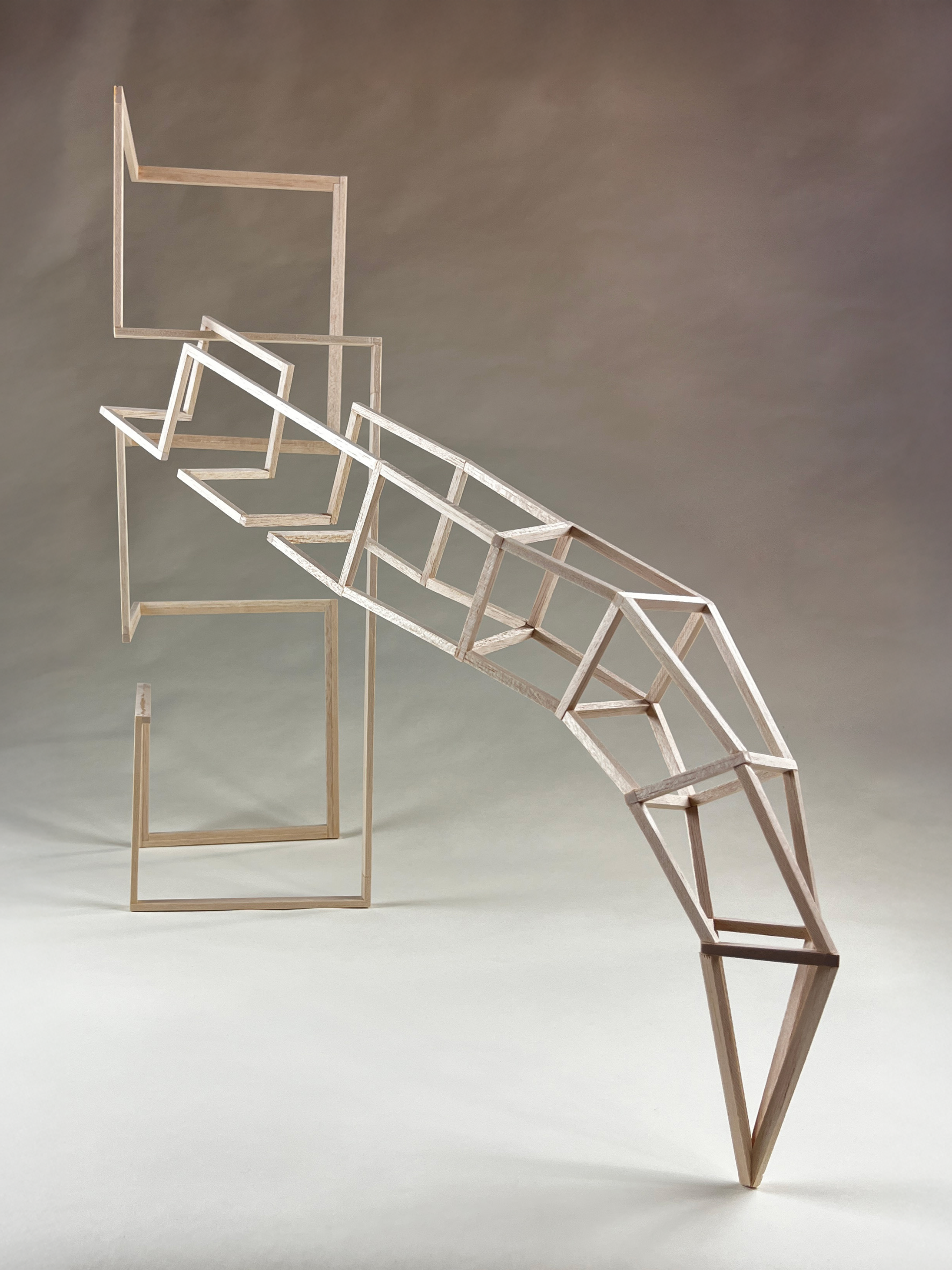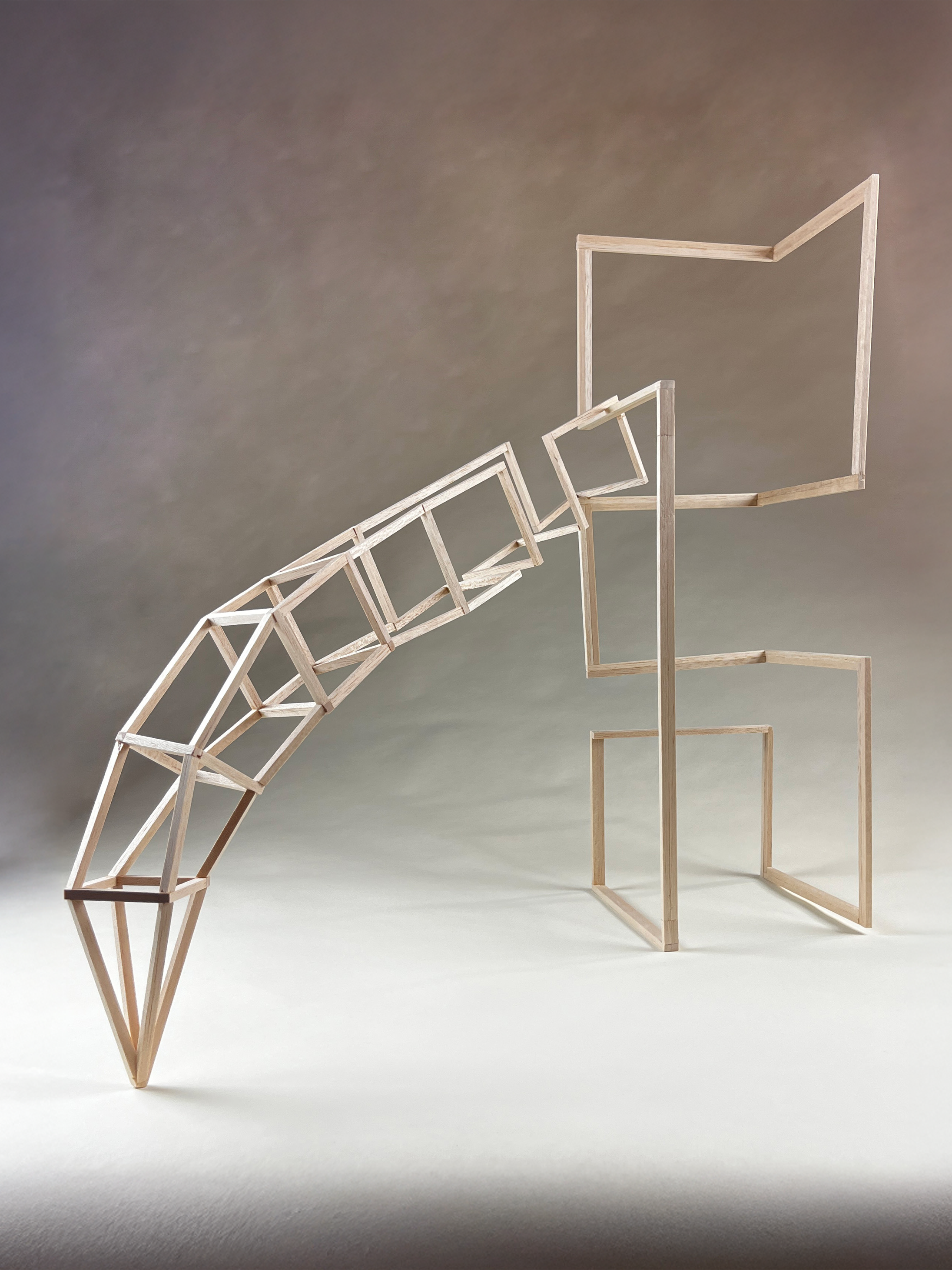 In this course, students were tasked with creating 3D objects using solids and lines. Each structure was required to be distinct from every angle, ensuring a drastically different appearance when viewed from various perspectives. Additionally, the designs needed to capture visual interest. Throughout the semester, the coursework emphasized key design elements such as tabletop interaction, edge interaction, scale, angle, and alignment to bring these concepts to life.
