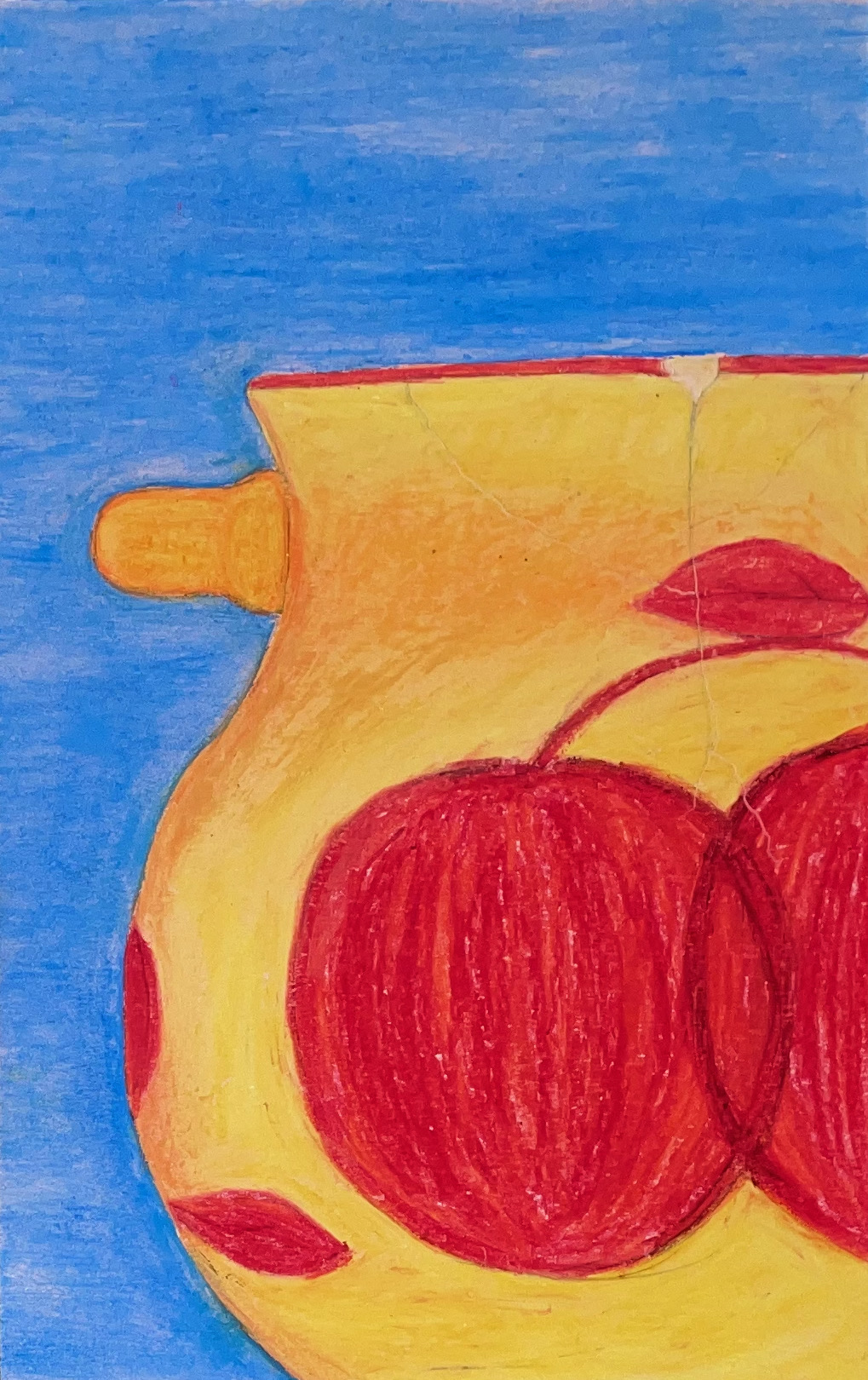 For this project, color interactions were explored by using different colored construction paper as a base and applying oil pastels to create dynamic compositions. Each piece measured 7" x 11" and followed specific color relationships. One drawing featured a cool-toned background with warm colors applied, another had a warm background with cool colors, a third combined a warm-toned paper with a warm object and a cool background, and the final piece used a cool background and object contrasted against a warm background.