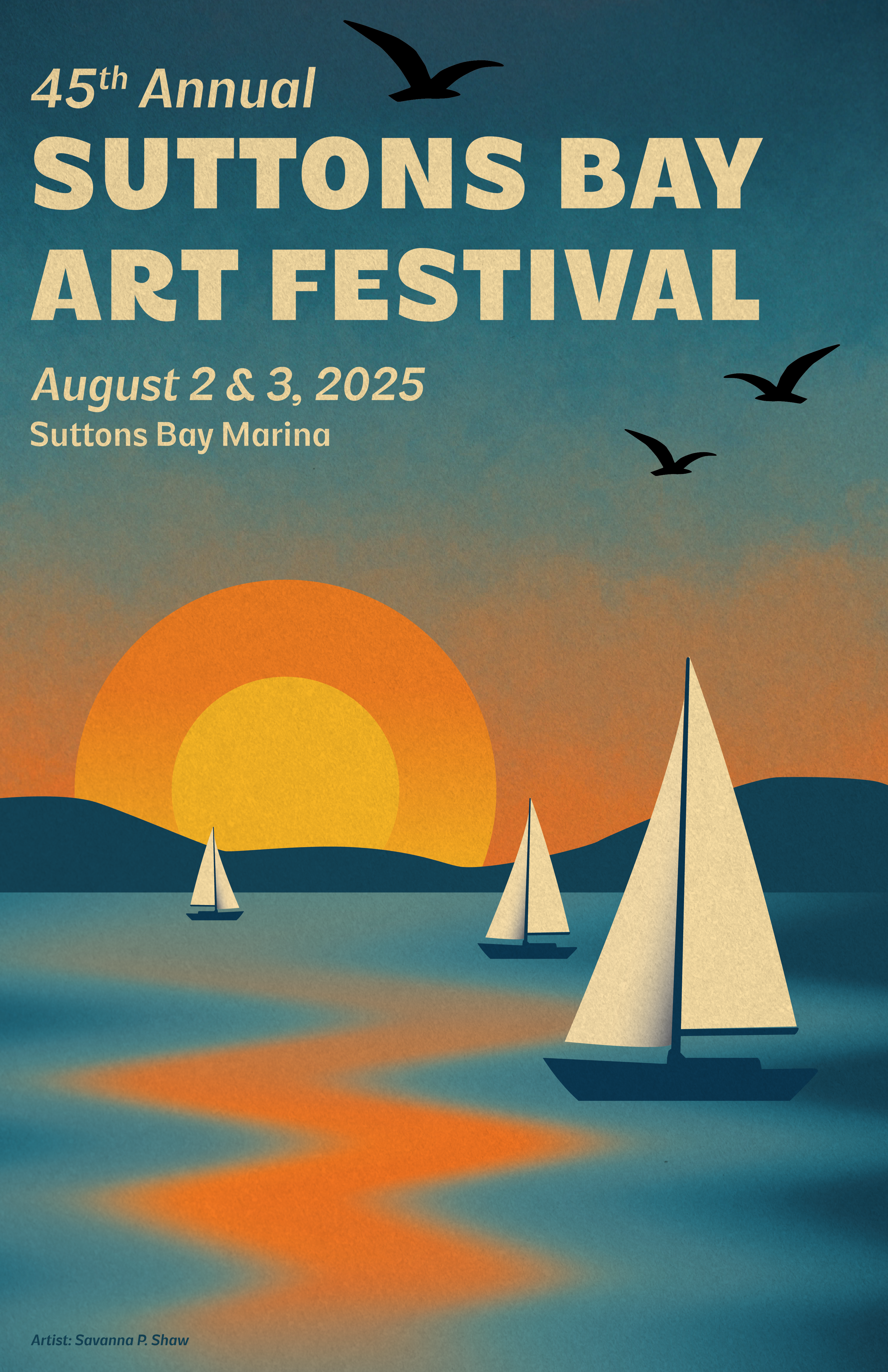 I created the winning poster design for the Suttons Bay Art Festival, held annually near Traverse City, Michigan. While the required festival text was provided, the visual direction was left open to the artists. My concept aimed to capture the nostalgic charm of a Northern Michigan summer evening—something that would resonate with both locals and visitors.